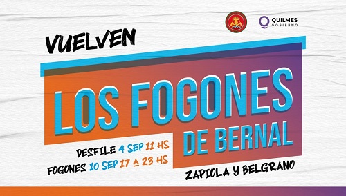Se vienen las celebraciones por las Fiestas Patronales de Nuestra Señora de la Guardia, en Bernal, en los que la Comuna acompaña a la organización que en esta oportunidad encabezan los Bomberos Voluntarios e instituciones de dicha localidad. Los festejos comienzan el domingo 4 de septiembre con el desfile y tendrán su epicentro el sábado 10 con los tradicionales Fogones, que este año tendrán su 55ª edición.
