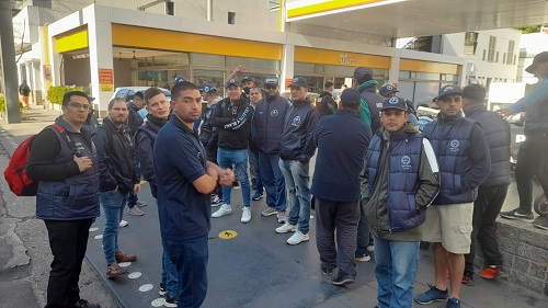 Trabajadores de la nocturnidad de diferentes locales de Quilmes enrolados en UPSRA (Unión Personal de Seguridad de la República Argentina) se manifestaron frente a la delegación del Ministerio de Trabajo de Quilmes, en Lavalle casi Garibaldi para denunciar a varias empresas por incumplimiento del convenio colectivo de trabajo.