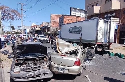 Un hombre murió y cuatro personas resultaron heridas de diversa gravedad en un accidente en el que se vieron involucrados un camión y dos autos.