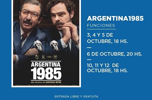En este marco, el jueves 29 a las 20, se proyectará la película “Argentina, 1985”, que cuenta con la dirección de Santiago Mitre y está protagonizada por Ricardo Darín (Julio Strassera), Peter Lanzani (Luis Moreno Ocampos), Alejandra Flechner Carlos Portaluppi, Norman Briski, Héctor Díaz, Alejo García Pintos, Claudio Da Passano, Gina Mastronicola, Walter Jakob y Laura Paredes.