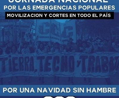 Bajo la consigna «Por una Navidad sin hambre» la Corriente Clasista y Combativa realizará mañana, martes 29 movilizaciones por todo el país.