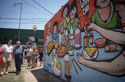 En relación a la obra del mural, el director general de Políticas Socioculturales, Leandro Cepeda, relató: “La idea surge por una demanda del club, que tenía una fachada pintada con banderas de colectividades de hace muchos años y el objetivo era hacer una renovación. A partir de ahí nos juntamos con las áreas de Internacionales y Entidades y surgió. Lo que hicimos fue vincularnos con dos artistas locales y reunirnos con el club para que les cuenten el desarrollo de toda su historia”.