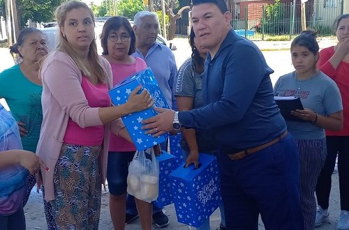 Diego Giménez, concejal de Florencio Varela (PRO) compartió una jornada social con los vecinos de Los Eucaliptus donde entregó cajas navideñas y dialogó con los lugareños sobre las inquitudes en la zona. Lo acompañó la psicóloga social, Karina Ojeda en la recorrida.
