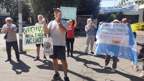 Si bien el gobierno municipal aseguró que se realizará «en un sector en el que no hay árboles para continuar con el compromiso asumido por la gestión que encabeza la intendenta Mayra Mendoza, de preservación y cuidado del ambiente», los manifestantes se expresaron en defensa de los mismos y de la preservación del predio como «espacio verde».