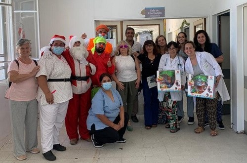 Junto a directivos y personal del Hospital Iriarte de Quilmes, Papá Noel junto a Bombucha y Montañita, por iniciativa de la la cooperadora llevaron adelante una jornada de alegría y diversión para todos los nenes que viven las fiestas en la internación.