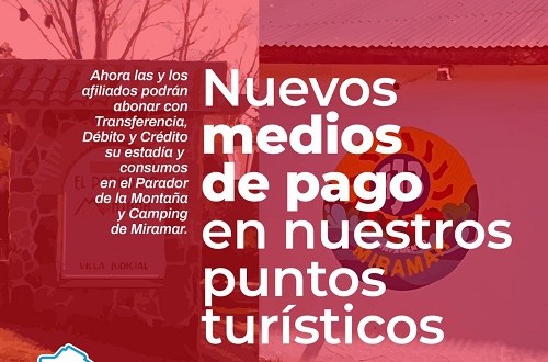 Las y los afiliados podrán abonar su estadía y consumos del Parador de la Montaña y Camping de Miramar con Transferencia, Debito o Crédito.