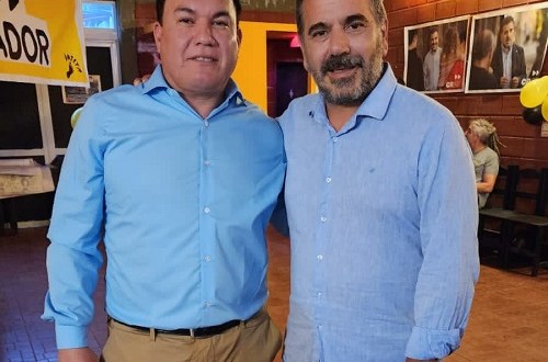 A lo largo de la recorrida estuvo acompañado por el concejal varelense Diego Gimenez.