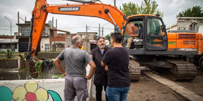 “Estamos en la zona del Triángulo de Bernal, más precisamente en Victorica y Bermejo, con los equipos de Agua y Cloaca trabajando en la desobstrucción del arroyo. Cayó mucha agua durante la madrugada y el pluviómetro que tenemos en la estación de bombeo de Villa Luján nos marcó 17 milímetros. Por eso, vinimos con todos los equipos a este punto en particular porque acá empieza el conducto pluvial, pero las tareas se desarrollan en todos los cruces de los arroyos”, señaló Sebastián García.