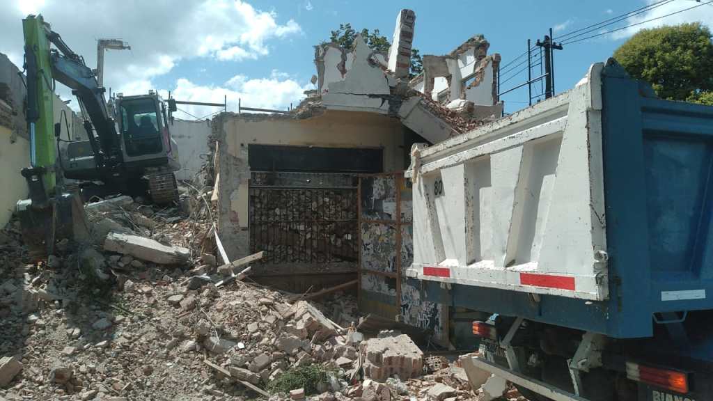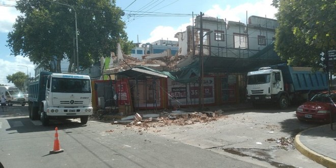 En el lugar, estaban trabajando con una retroexcavadora cuando repentinamente la pared del frente cayó hacia la calle.