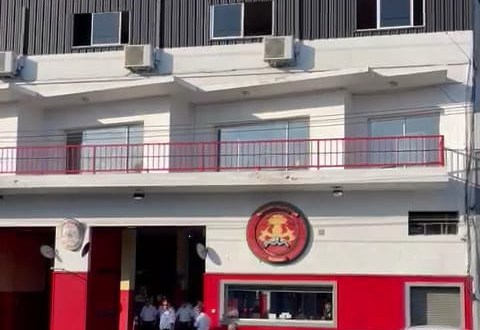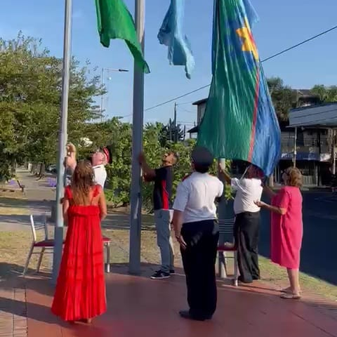 Esta mañana se realizó una ceremonia en el cuartel de la avenida Dardo Rocha y 9 de Julio con el izamiento de banderas en los mástiles que estan sobre el boulevard y posteriormente los bomberos compartieron un desayuno,