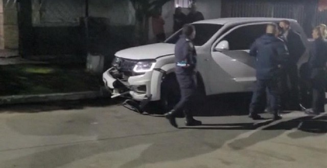 La artista estaba a bordo de una camioneta Amarok Blanca e impactó contra un auto Bora negro en el que viajaba un policía con sus dos hijos. No hubo heridos.