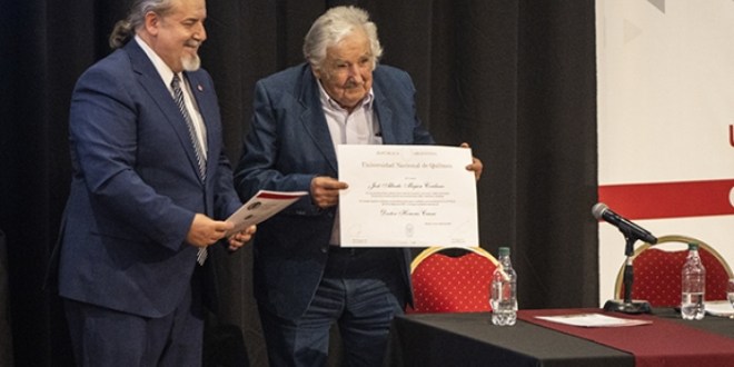 José «Pepe» Alberto Mujica Cordano, ex presidente de la República Oriental del Uruguay, fue distinguido con el título de Doctor Honoris Causa de la Universidad Nacional de Quilmes (UNQ).