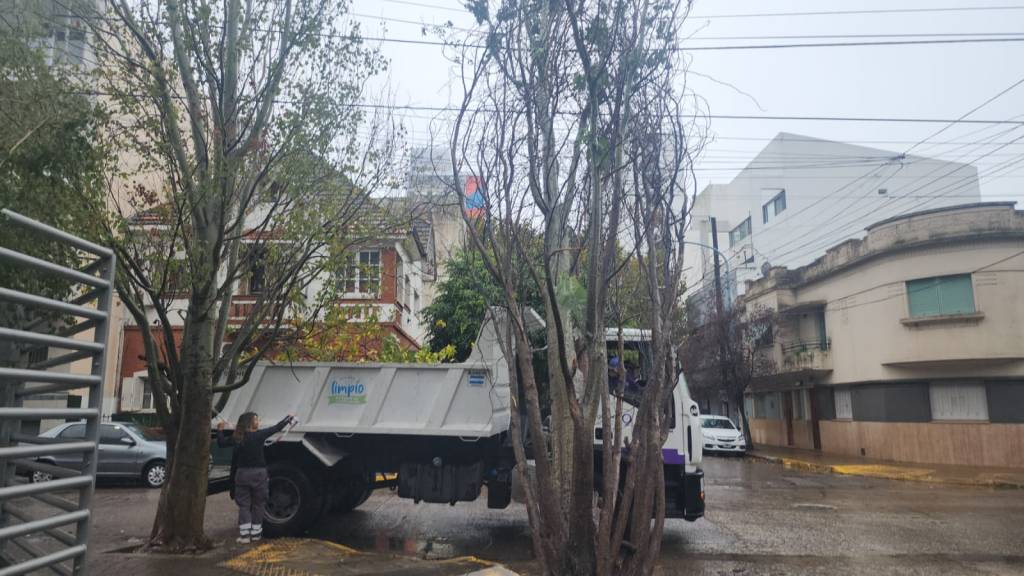 Como refuerzo de las habituales tareas de mantenimiento de los espacios públicos debido al intenso temporal que se desató en las últimas horas en el distrito, se realizaron trabajos de desobstrucción de sumideros, limpieza de arroyos en puntos estratégicos, control de estaciones de bombeo, y retiro de árboles y ramas que cayeron producto de las fuertes ráfagas de viento de la madrugada.