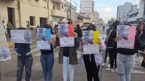 Familiares de Diego Amarilla, asesinado en diciembre de 2020, se concentraron esta mañana en los Tribunales de Yrigoyen y Videla para reclamar justicia, en el marco del comienzo del juicio.