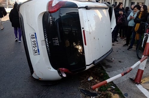 En ese interín pasó el tren, que se dirigía desde Quilmes a Bernal y embistió el auto que terminó chocando contra el laberinto y volcó.