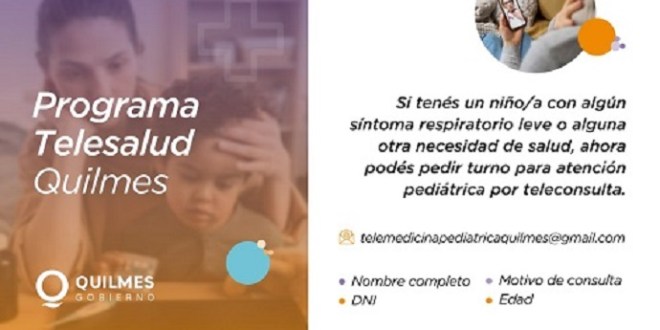 El Municipio de Quilmes lanzó el programa “Telesalud Quilmes”, una propuesta para brindar atención pediátrica virtual a través de una videollamada a todos los quilmeños y quilmeñas que lo soliciten, donde los profesionales de la Secretaría de Salud responderán a cada una de las inquietudes que tengan, ya sea por un cuadro respiratorio leve u otras necesidades sanitarias.