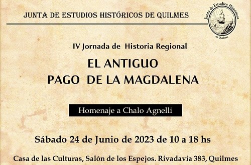 Se llevará a cabo la IV Jornada de Historia Regional “El Antiguo Pago de la Magdalena”. Además, se realizará un homenaje al Profesor Chalo Agnelli. Será el 24 de junio a las 10 en la Casa de la Cultura de Quilmes con entrada libre y gratuita.