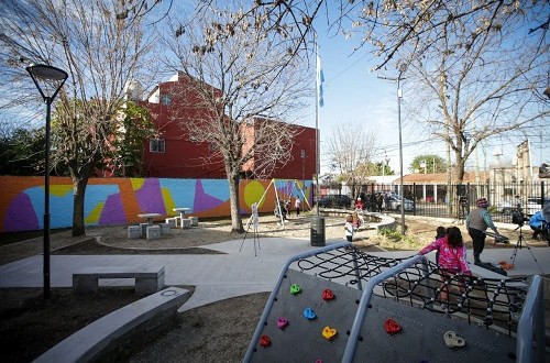 La plaza, que lleva el nombre de Manuel Lombardía, en homenaje a uno de los primeros vecinos de la IAPI, por su compromiso con el barrio, fue puesta en valor de manera integral. Se colocaron juegos nuevos, equipamiento urbano (bancos y cestos de basura metálicos), solados (hormigón peinado y baldosas táctiles), luminarias LED, veredas perimetrales y se hicieron trabajos de herrería.