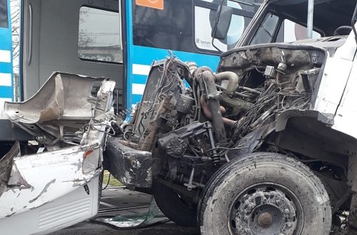 El hecho se produjo cuando el camión ingresó a la zona de vías esquivando a los automóviles que se encontraban detenidos en el cruce con las barreras bajas y haciendo caso omiso a las señales fonoluminosas.