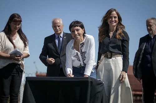 La intendenta de Quilmes, Mayra Mendoza, participó del acto de firma de convenio para la entrega de equipamiento urbano para barrios populares que realizó el Ministerio de Desarrollo Social de la Nación, a través de la Secretaría de Integración Socio Urbana (SISU), en las instalaciones del Complejo Industrial y Naval Argentino Tandanor.
