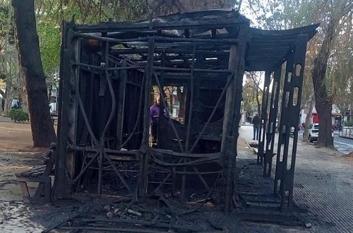 Volvieron a quemar el Ecopunto de la plaza Conesa en Colon y Lavalle del centro de Quilmes. El puesto quedó totalmente destruido por las llamas que se propagaron a un árbol y al cableado público.