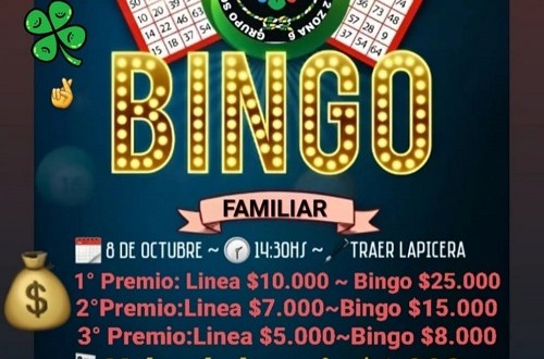 El Bingo familiar se realizará a partir de las 14.30 y habrá buffet económico para pasar la tarde.