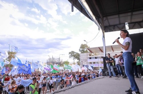 La intendenta de Quilmes y candidata a la reelección por Unión por la Patria (UP), Mayra Mendoza, encabezó este martes un multitudinario acto con movimientos sociales, gremios y centrales de trabajadores que se llevó a cabo en San Francisco Solano.