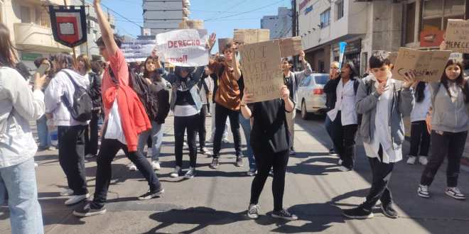 «Están reclamando el terreno usurpado por el Centro Cultural Gleyzser. Marcharon hasta allí reclamando la devolución y ahora al Poder Judicial para que se reactive la causa de desalojo que está archivada», dijo una de las docentes que acompañó a los alumnos organizados en el centro de estudiantes.