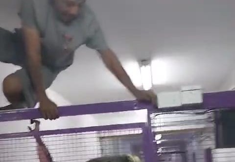 A los gritos se trepó a la puerta de reja de la guardia, enfrentó al personal de seguridad y exigió que atiendan a su esposa que estaba descompuesta.