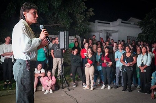 La intendenta Mayra Mendoza dio un mensaje a la militancia que se reunió en el bunker de la calle Miguel Cané y 12 de Octubre tras la derrota de Sergio Massa.