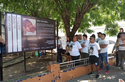 «Argentina Unida contra la Violencia Institucional», cierra el texto plasmado la señalización que queda para la Memoria en la sede policial.