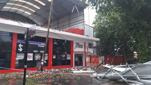La estructura metálica del gimnasio del Club Juventud de Bernal, ubicado en la planta alta de la entidad de Cramer y La Paz, voló como consecuencia del temporal de lluvia y viento que se desató en el distrito a las 3 de la mañana.