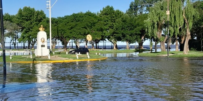 El río salió de su cauce como consecuencia de la sudestada y las ráfagas de viento del sudeste que llegaron hasta 55 km/h.
