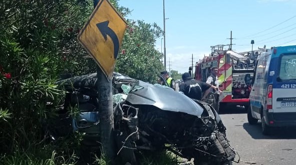 El hecho ocurrió cuando el conductor del auto, que se dirigía hacia CABA intentó esquivar un perro que cruzaba la autopista y tras perder el control del vehículo, terminó incrustado sobre el guardrrail.