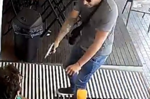 Estaban conversando sobre la situación de la inseguridad cuando repentinamente aparece el delincuente armado que le pide la mochila que uno de los comensales tenía colgada detrás de la silla.