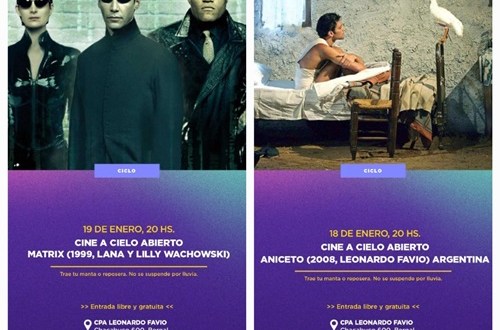 El ciclo “Cine a Cielo Abierto” se realizará desde las 20, los próximos jueves y viernes de enero, en el Centro de Producción Audiovisual (CPA) Leonardo Favio, (Chacabuco 600, Bernal). La propuesta es al aire libre, con entrada libre y gratuita y no se suspende por lluvia.