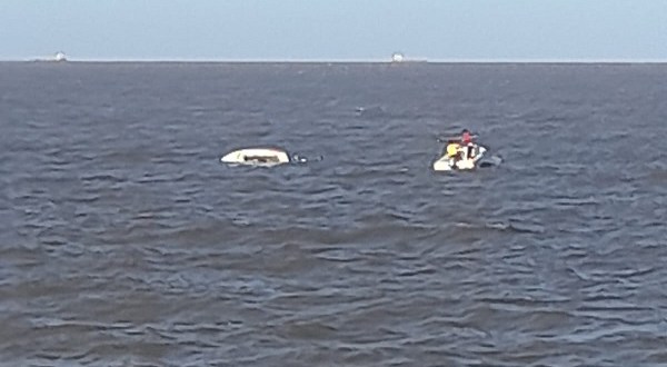 Rescataron sanos y salvos a dos tripulantes de un velero frente al nuevo Parque de la Ribera. La embarcación, por efecto del viento, volcó sobre uno de sus laterales.