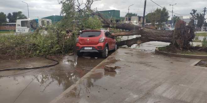 Un árbol de gran porte cayó sobre un auto que estaba estacionado a la altura de la rotonda de Otamendi y Cervantes, de la mano del acceso al Parque de la Ribera de Quilmes. El vehículo quedó parcialmente destruído.