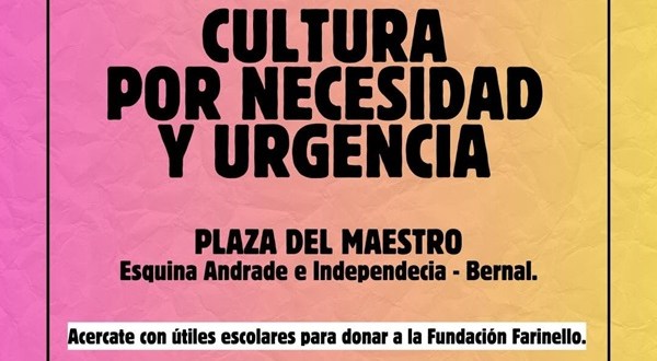 Será en el Plaza del Maestro de Bernal donde además estarán haciendo una colecta de útiles escolares para donar a la Fundación Farinello.