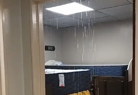 Según informaron, el agua se filtró por el cielo raso y caía como cascada sobre el sector de descanso de los médicos.