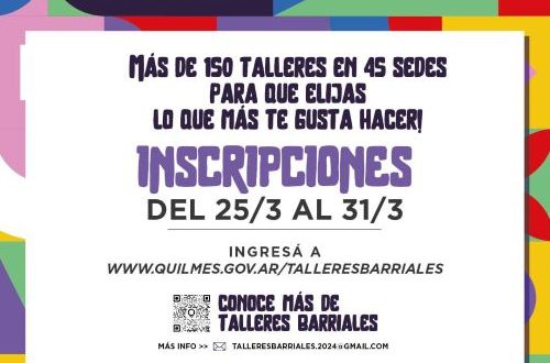 La misma se extenderá hasta el domingo 31 de marzo y se podrá llevar a cabo a través de la página web de la Municipalidad de Quilmes: www.quilmes.gov.ar/talleresbarriales.