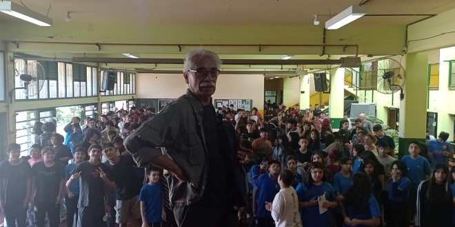 Dalmiro Suárez, sobreviviente del Pozo de Quilmes y que padeció en carne propia la dictadura militar participó ayer de una charla con estudiantes secundarios en la Escuela de Educación Secundaria N° 5 de Ezpeleta.