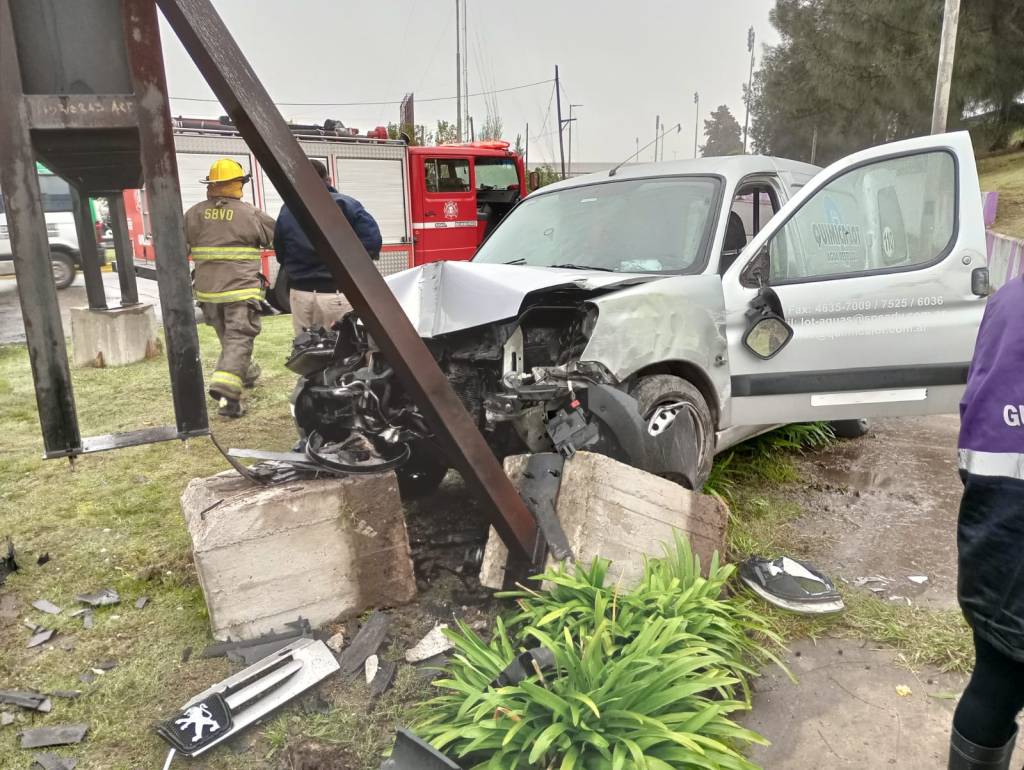 El conductor, por causas que se investigan, perdió el control provocando importantes daños en su vehículo y en una de las estructuras del cartel, donde quedó incrustado.