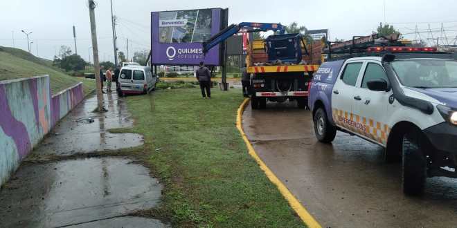 Un vehículo utilitario terminó impactando contra el cartel y pantalla LED del Municipio, ubicado en la bajada de la Autopista Buenos Aires-La Plata, a la salida del peaje de Quilmes.