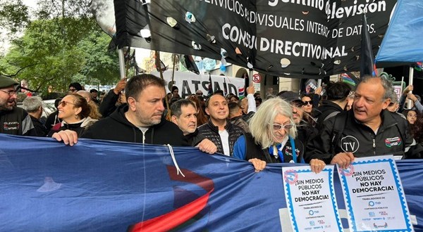 Nieto estuvo acompañando a la columna del SAT (Sindicato Argentino de Televisión) que portaban las consignas «Sin medios públicos no hay democracia».