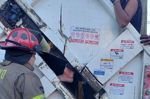 Fue en ese momento que le quedó el pie atrapado en el mecanismo de compactación por lo que se dio rápido aviso a los bomberos voluntarios y al SAME.