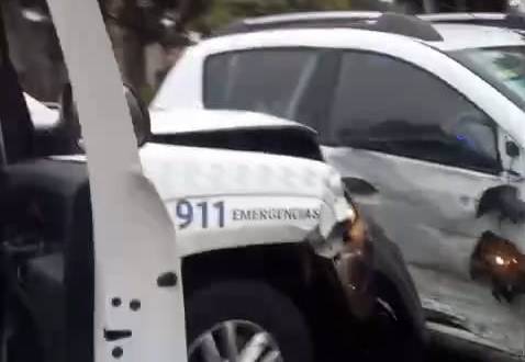 Un móvil policial y un auto chocaron en la intersección de Brown y Hernández en Quilmes.