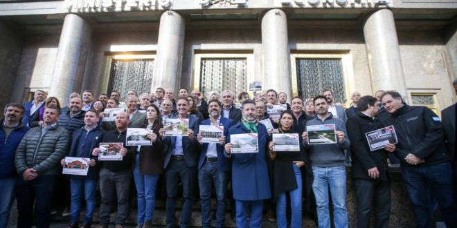 La acción que impulsó el ministro de Infraestructura y Servicios Públicos provincial, Gabriel Katopodis, fue entregarle a su par de Economía de Nación, un detalle de cada una de las obras abandonadas por el Estado Nacional en la Provincia y acompañar la acción con una foto colectiva con las y los intendentes.