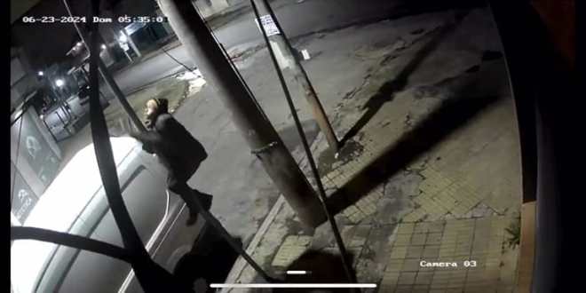 En el video transcurre en la madrugada del domingo 23 de junio. La calle semi desierta, apenas un auto pasa por la avenida Rodolfo López.