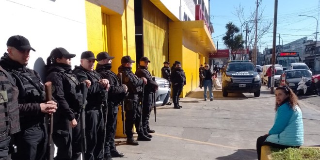 Con gran despliegue de efectivos y móviles de la Policía Federal se realiza una inspección en el Outlet Quilmes, ubicado en Yrigoyen 85.
